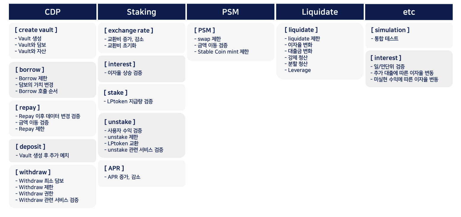 발견한 취약점에 관련해서 위협 시나리오를 작성하고 Foundry를 이용하여 테스트 코드를 작성했다. Foundry가 Rust로 개발되어 속도가 빠르고, Hardhat이나 Truffle과 달리 Solidity로 테스트 코드를 작성할 수 있어서 편리했다.
