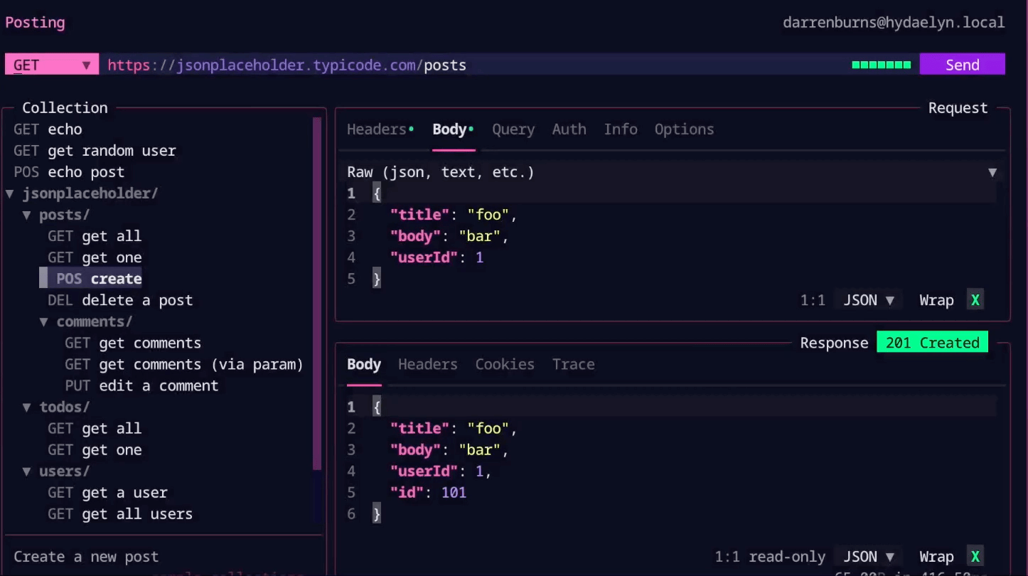 터미널에서 사용할 수 있는 API Client 도구이다. nvim에서 활용하고 싶다면 rest.nvim을 확인해 보기 바란다.